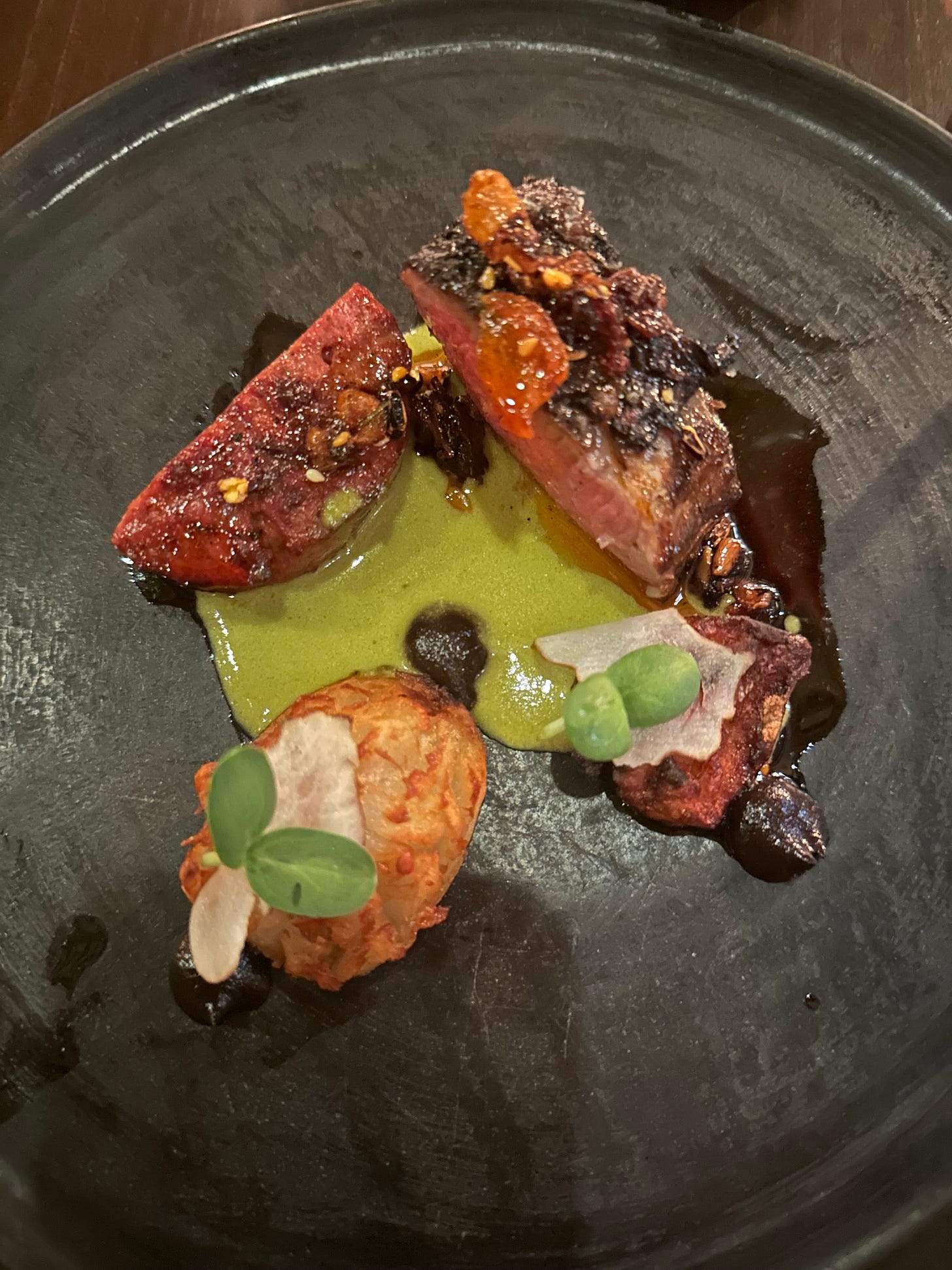 Last week we went to this special Top Chef “family dinner” where the Houston Top Chef contestants made and served a five-course meal, and this is the lamb course from last year’s winner Tristen. It was so good.